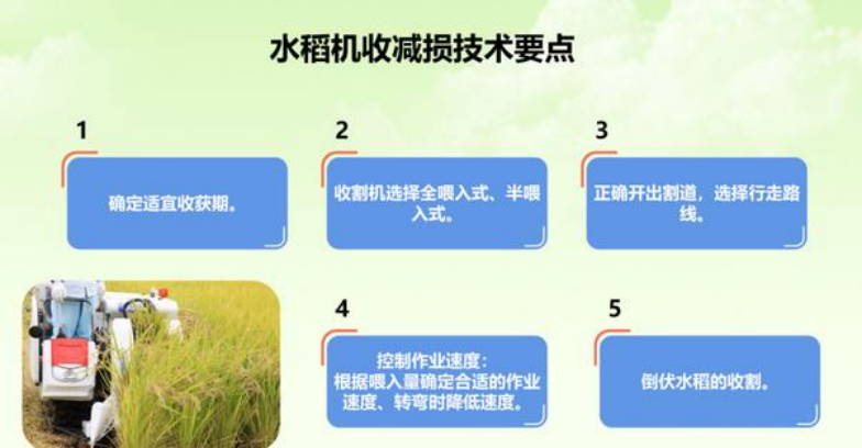 使用机械化收割方法时,应根据实际情况和农田的特点合理选择收割机械和操作方法,在保证作物质量的前提下,使机收损失最小化。同时,也要关注水稻的生长环境和生态协调性,努力推动农业的可持续发展。
