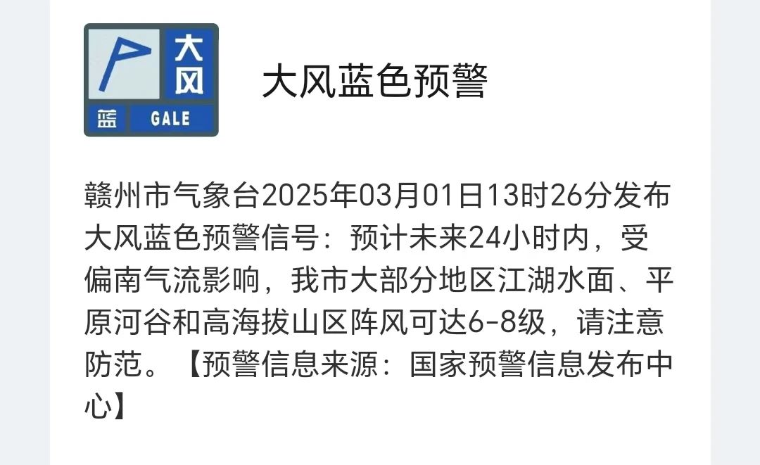 【预警信息】大风蓝色预警信号