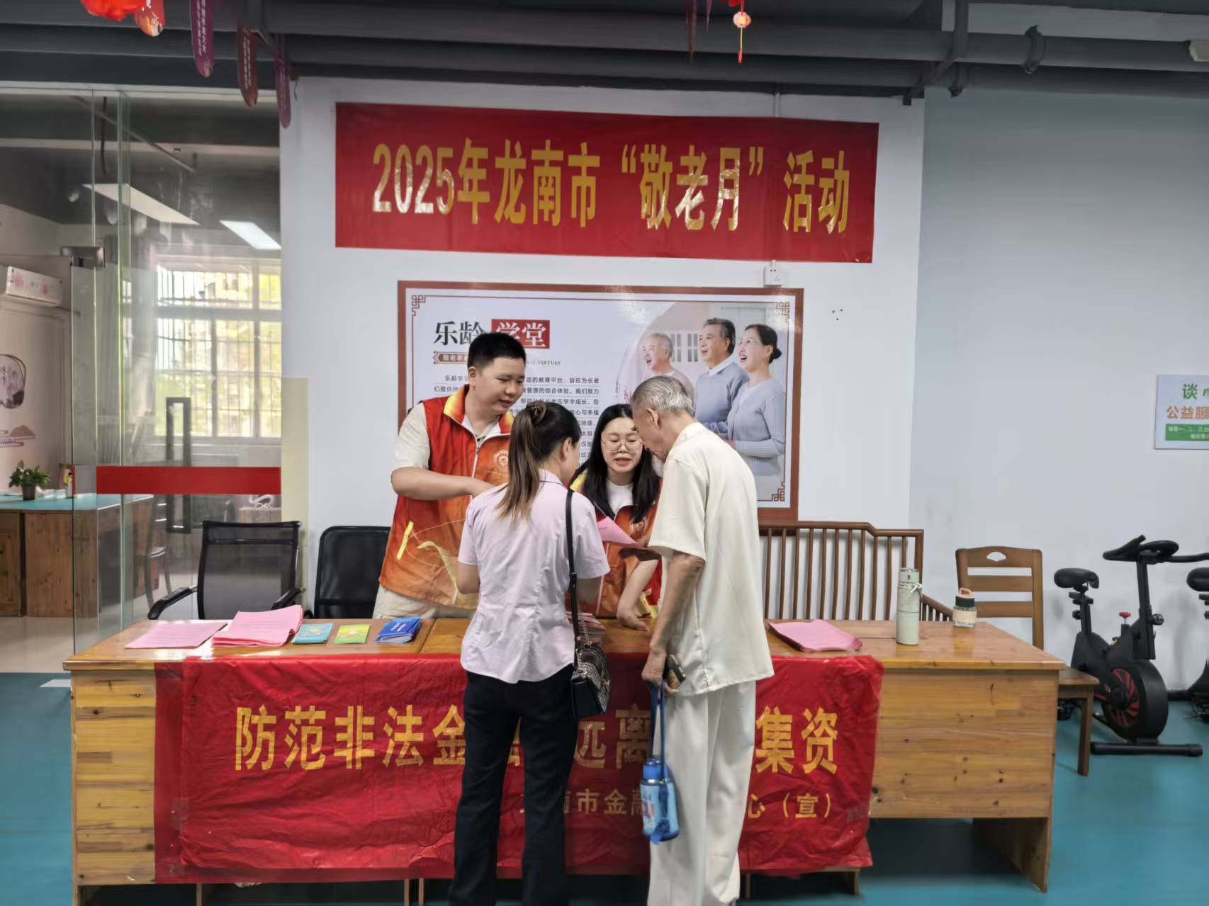 10月16日上午,2025年龙南市“敬老月”活动启动仪式在好孝心为老服务中心启动。龙南市金融服务中心积极参与,同步开展养老领域防范非法金融宣传教育活动,让“敬老”与“护老”同频共振。