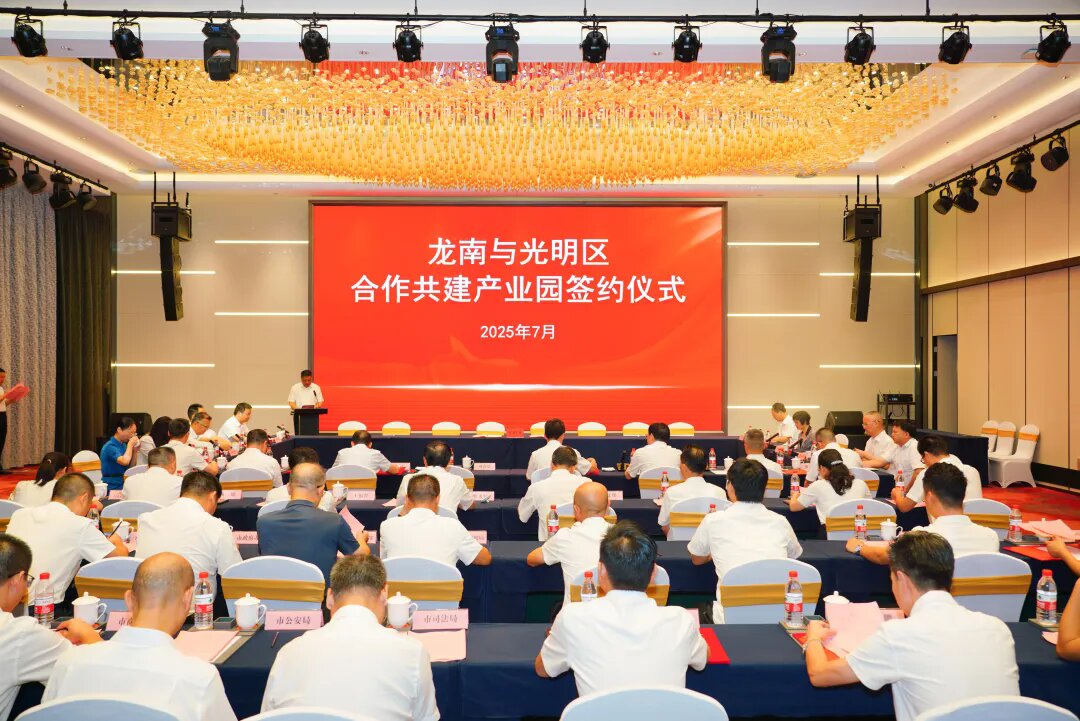 孙国应指出,2024年8月龙南与光明结对以来,两地始终秉持优势互补、合作共赢原则,在统战、通信、文体等领域建立紧密对接机制,推动文化交流、产业协作、文旅融合等工作落地见效。今年“龙光”合作共建产业园的落地,是两地深化合作的里程碑,更是携手迈向高质量发展的新起点,坚信在各方共同努力下,这片产业园将成为两地科技创新、产业协同、经贸交流的新平台。