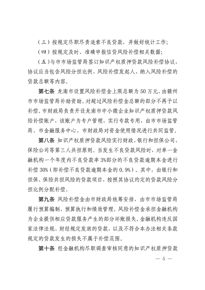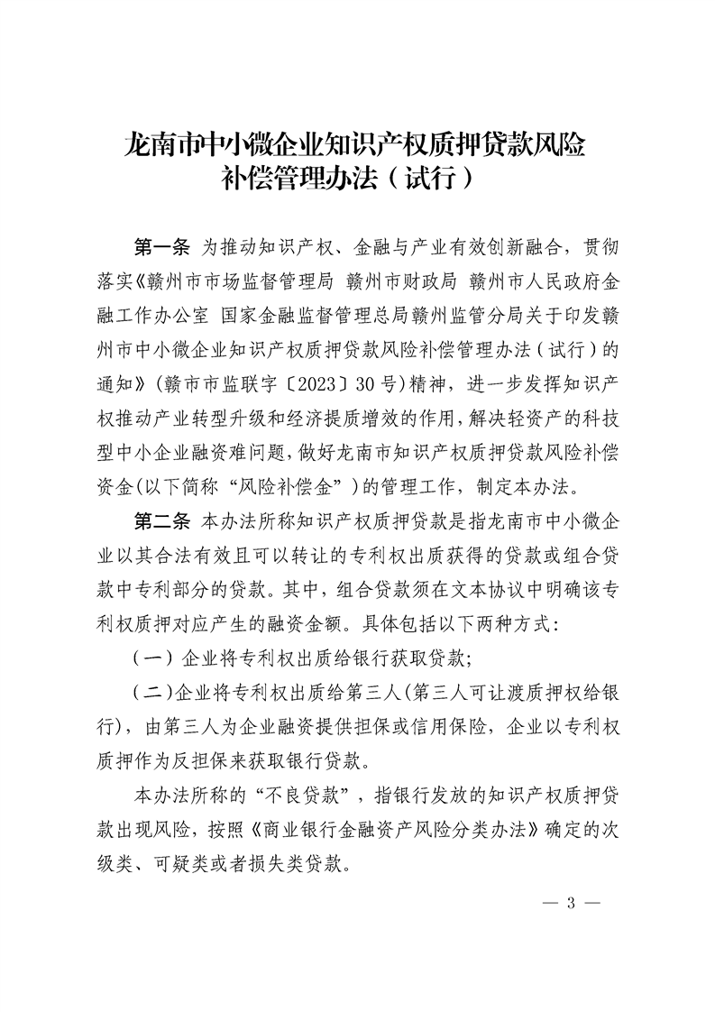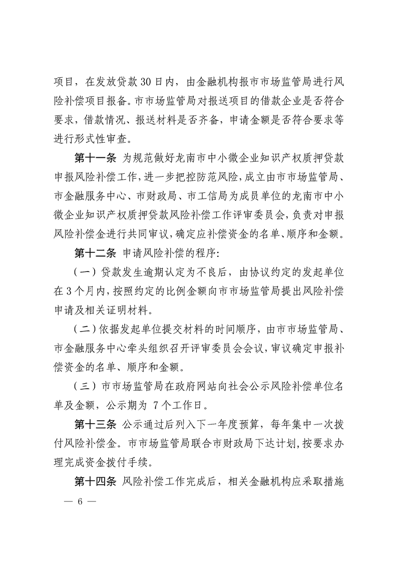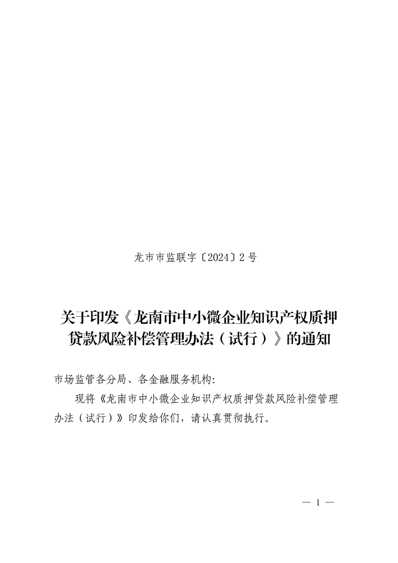 关于印发《龙南市中小微企业知识产权质押贷款风险补偿管理办法(试行)》的通知.pdf