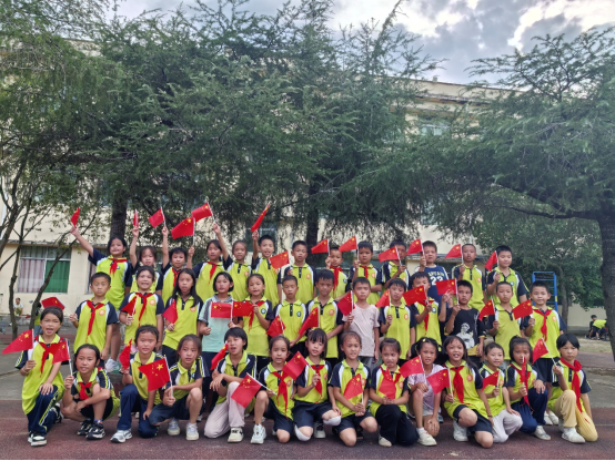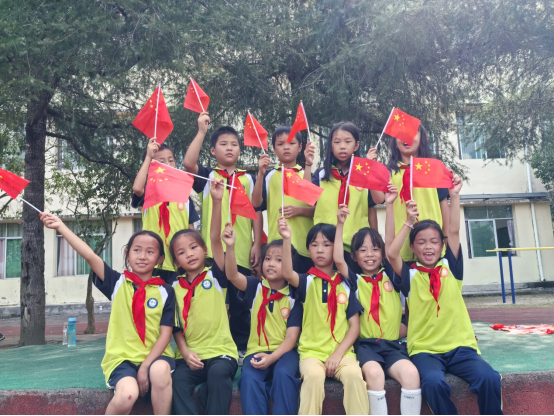 汶小校园飘红啦!一场合影让爱国种子扎根童心