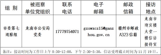 赣州市委第七巡察组巡察龙南市公安局党委的公告