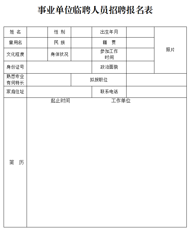 报名时请携带本人身份证、户口簿、毕业证、健康证(或近期体检报告)等相关资格证书原件及近期1寸免冠证件照1张,并填写《事业单位临聘人员招聘报名表》1份。