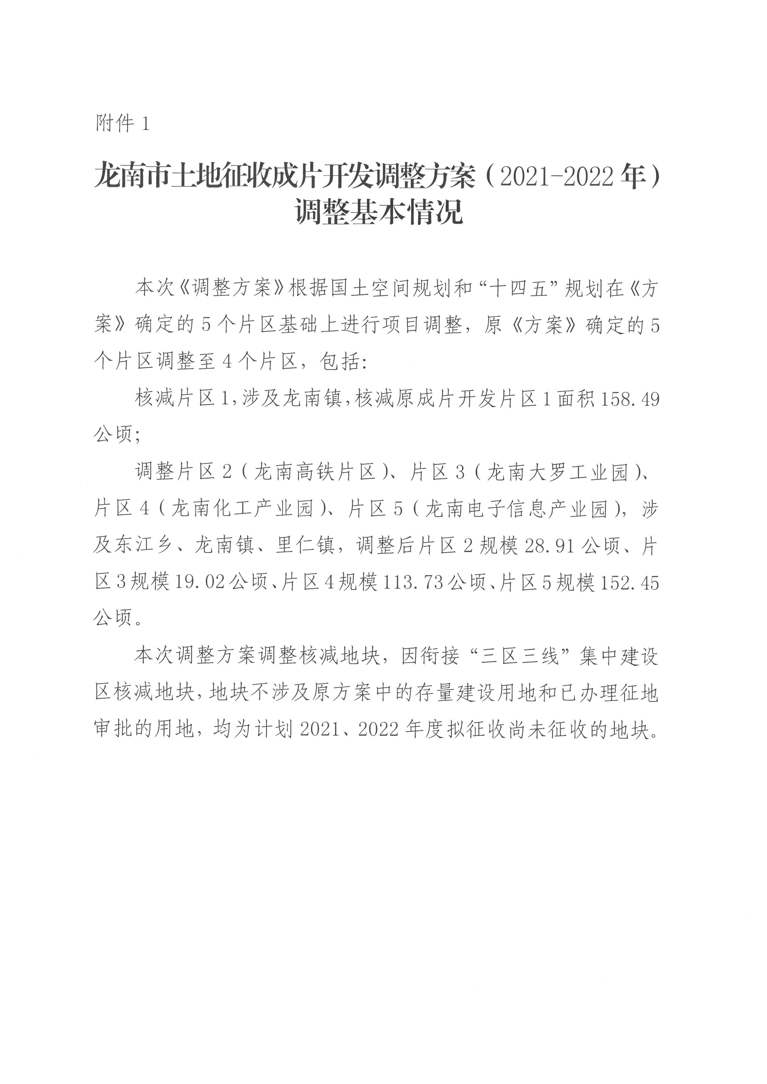 关于《龙南市土地征收成片开发方案(2021至2022年)调整方案》的公示