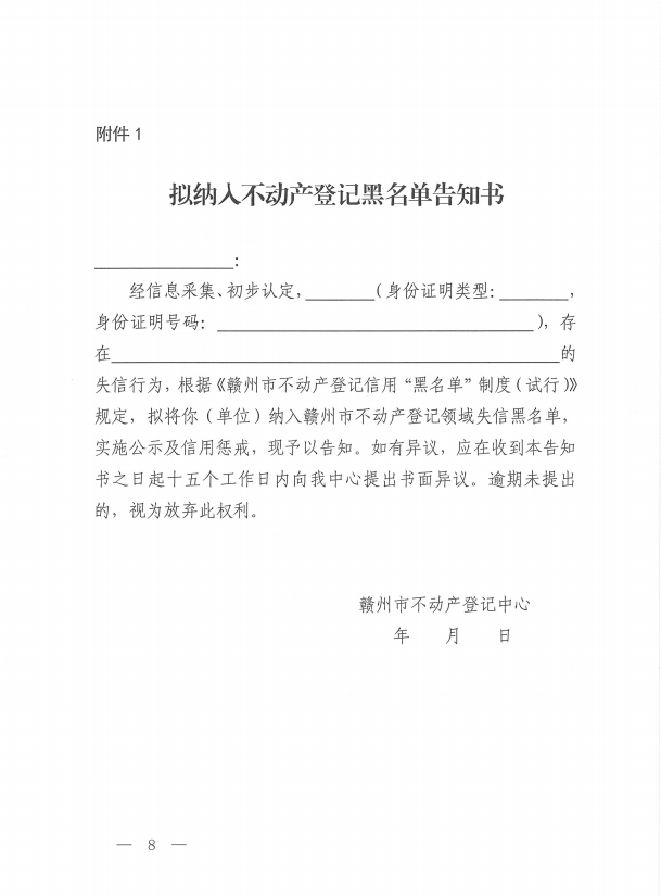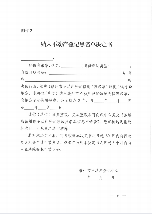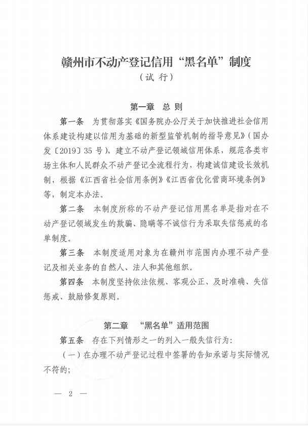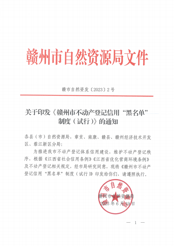 关于印发《赣州市不动产登记信用“黑名单”制度试行》的通知
