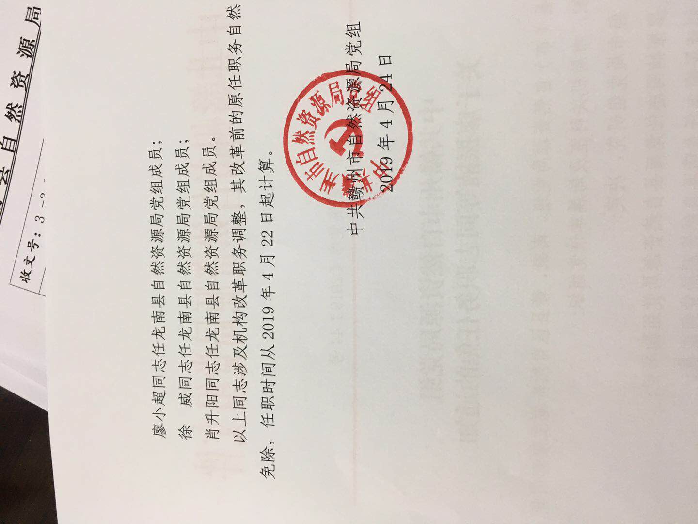 中共赣州市自然资源局党组关于廖振楠同志职务任免的通知