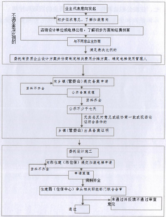 龙南市中心城区既有住宅加装电梯办事流程示意图