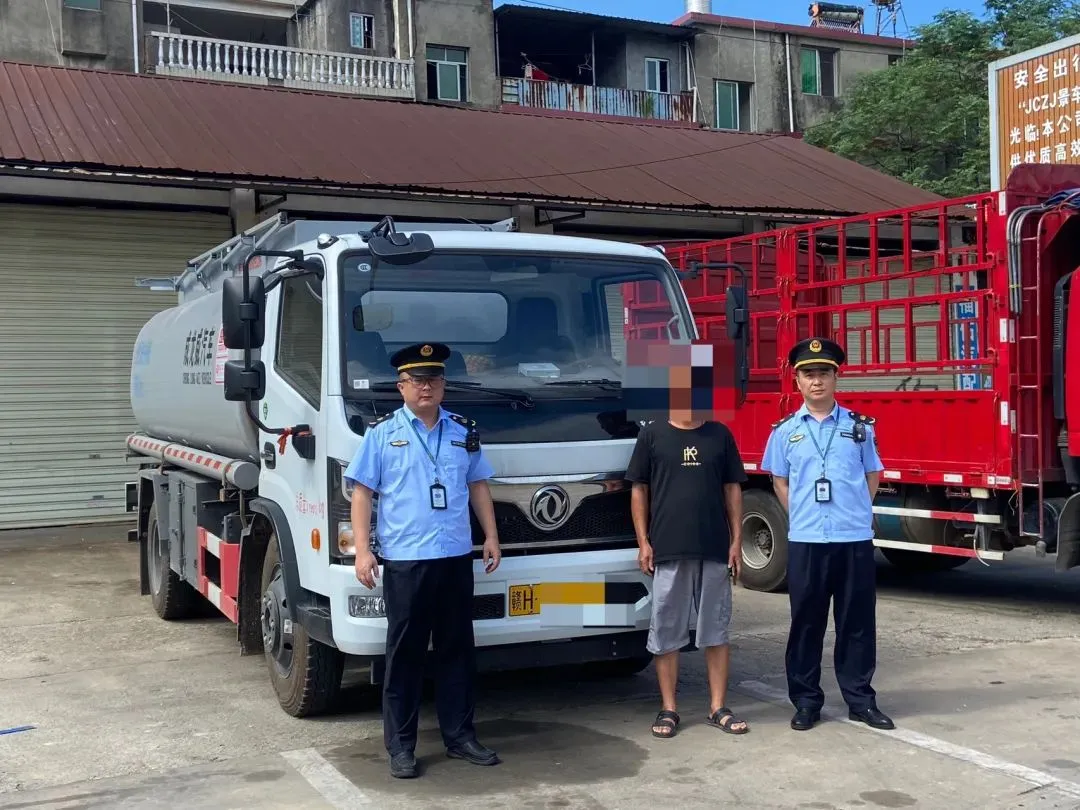 近日,景德镇市交通运输综合行政执法支队根据市民举报线索迅速进行蹲点摸排,及时制止了一台中型罐式货车非法运输燃料油的危险行为,消除了安全隐患。