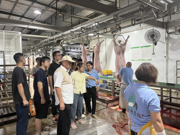 纸上得来终觉浅,培训的重头戏从办公室转向检疫现场,全体拟任官方兽医奔乡镇产地检疫一线开展现场观摩学习。8月19日下午,在乡镇指定的动物检疫申报点,拟任官方兽医们近距离观察了资深官方兽医如何规范开展动物临床健康检查、查验牧运通APP养殖档案和免疫标识等关键检疫流程。19日晚上,拟任官方兽医们前往生猪定点屠宰厂,现场近距离观摩了生猪从入场监督查验、宰前检疫,到同步检疫,再到检疫结果判定、出具检疫合格证明以及不合格动物产品无害化处理的全链条屠宰检疫过程。在机器轰鸣和灯火通明的车间里,拟任官方兽医们真切体会到官方兽医24小时待命、严把每一道关口的艰辛与责任。