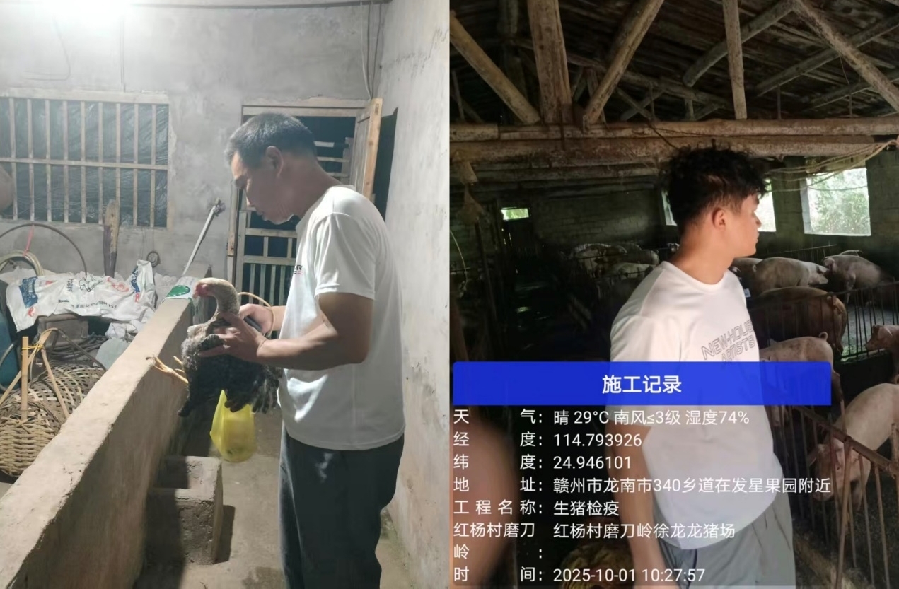双节假期,群众欢聚团圆之际,龙南市官方兽医坚守岗位,重点聚焦检疫调运和屠宰检疫关键环节,兼顾养殖巡查与病死畜禽无害化处置,以全链条把控保障产业健康,守护群众节日肉品供应。