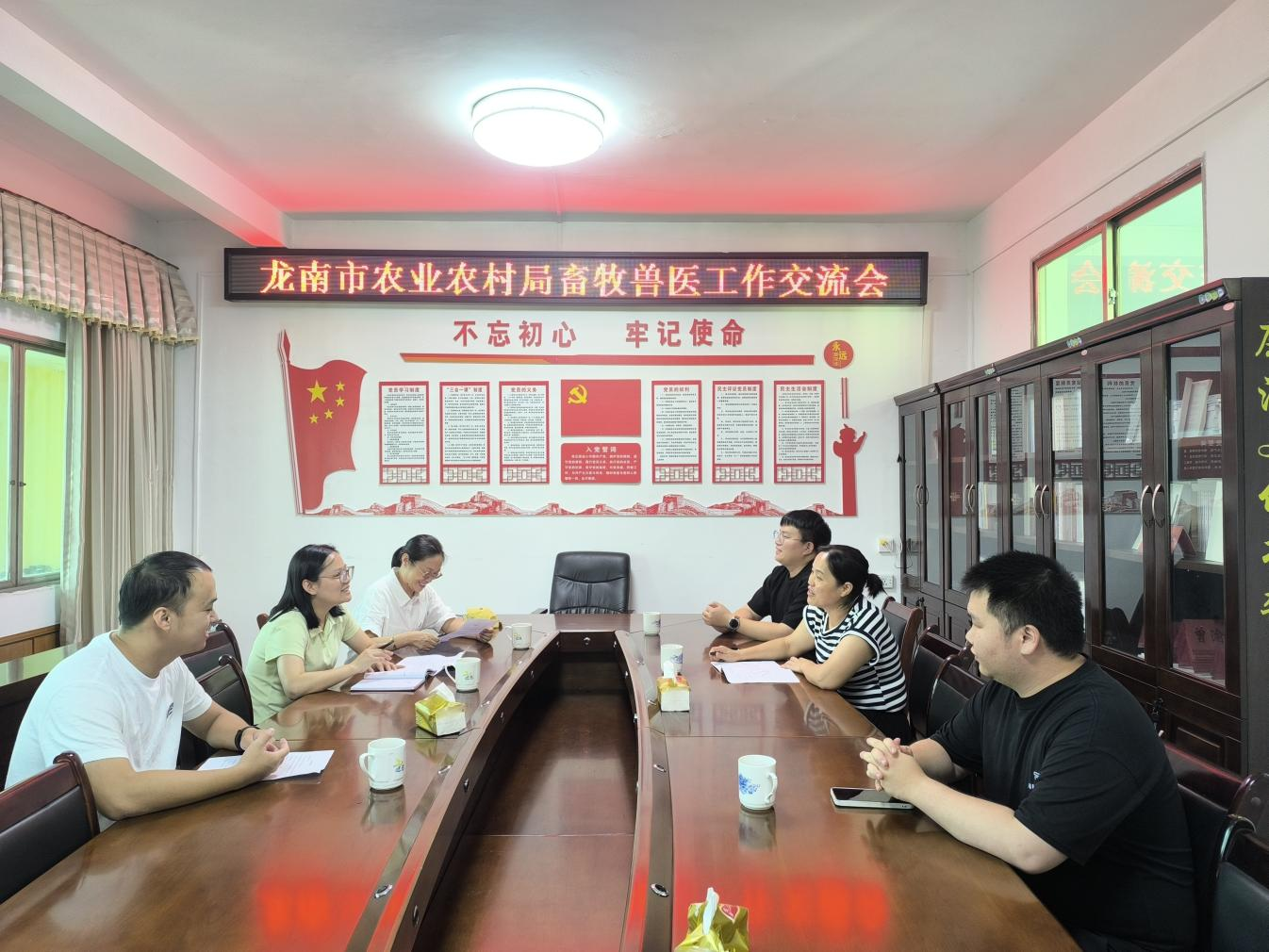学习小组首先在全南县农业农村局参加专题座谈会,双方围绕定点屠宰厂监管、动物疫病防疫与监测、“先免后补” 项目推进、畜禽养殖废弃物资源化利用、病死畜禽及产品无害化处理等核心工作,深入交流经验做法,现场学习讨论氛围浓烈。