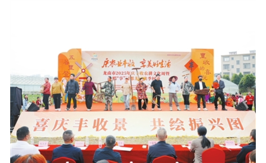 金秋十月,稻浪翻滚。10月25日上午,龙南市桃江乡醉丰洲产业园内,“龙南市2025年庆丰收农耕文化周暨唱‘享’围都龙南秋季村晚”活动热闹开场。昔日废弃的弃土场,如今已是集蔬菜种植、农特产品加工、科普研学于一体的农文旅综合体,成为展现乡村振兴成果的舞台。