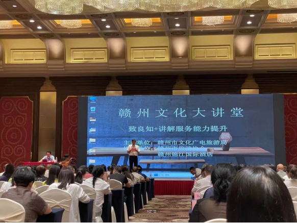 8月19日,赣州市文旅局组织开展“致良知”文化大讲堂,目的在于进一步加强全市各旅行社、旅游景区的服务质量管理,提升管理与服务人员的业务能力与服务水平。龙南市文广旅局积极组织辖区内旅行社工作人员、导游、景区讲解员等参加讲座培训,从讲座培训中吸取宝贵经验,为进一步做好旅游服务,提升旅游服务质量积蓄力量。