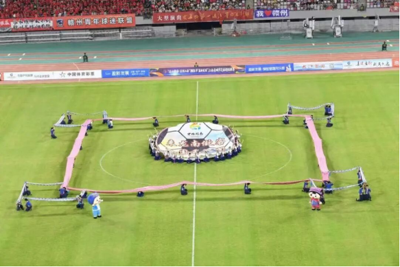 8月10日晚,“赣超”联赛赣州赛区(赣州VS抚州)在赣州“鸟巢”(赣州市全民健身中心)火热开赛。赛前,来自龙南的近百名演员齐聚赛场,为观众带来首个开场节目——龙南大型客家织带民俗舞蹈《客家龙南欢迎您》,率先点燃现场。绚丽服饰搭配灵动织带尽显客家韵味,上演了一场别开生面的客家民俗盛宴。