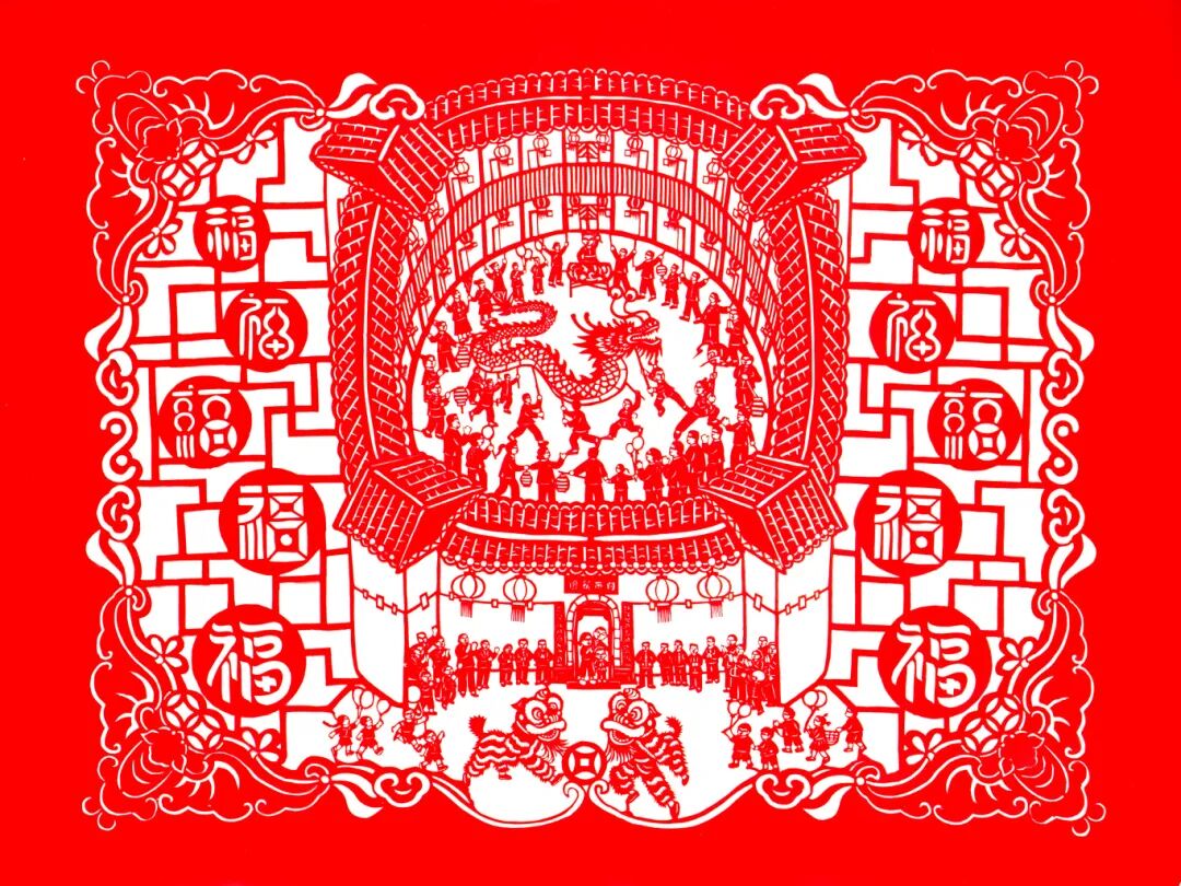 在江西省职工剪纸大赛中,龙南市文化馆职工叶焰菁创作的剪纸作品《万福客家》荣获二等奖。《万福客家》外框采用蝙蝠吉祥图案,“蝠”与“福”谐音,蝙蝠即遍地是福,寓意人民对美好的无限追求。蝙蝠飞入农户家中,象征“福从天降”“福运到来”。作品左右两边嵌入客家围屋的窗户纹样,并串联起形式各异的福字,寓意万福到家,表达人民对幸福生活的美好祝愿。