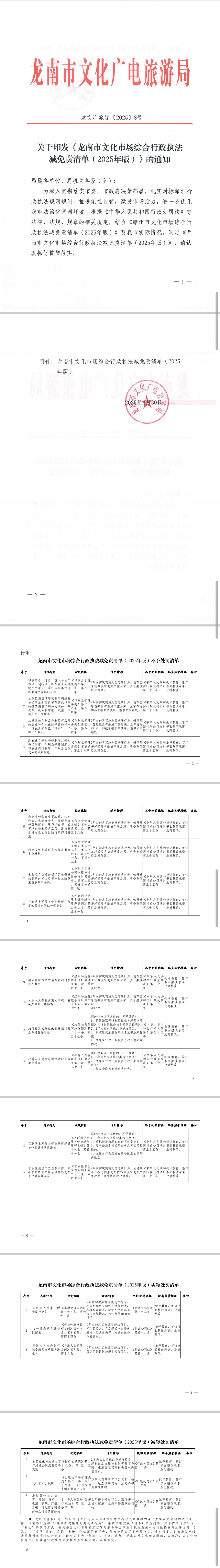 龙文广旅字〔2025〕8号关于印发《龙南市文化市场综合行政执法减免责清单(2025年版)》的通知