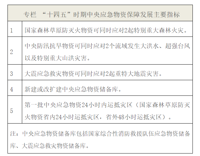 到2025年,建立中央储备和地方储备相互补充、政府储备和社会储备相互结合的应急物资储备体系。