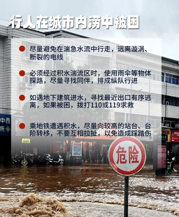 暴雨期间行人在城市内涝中被困