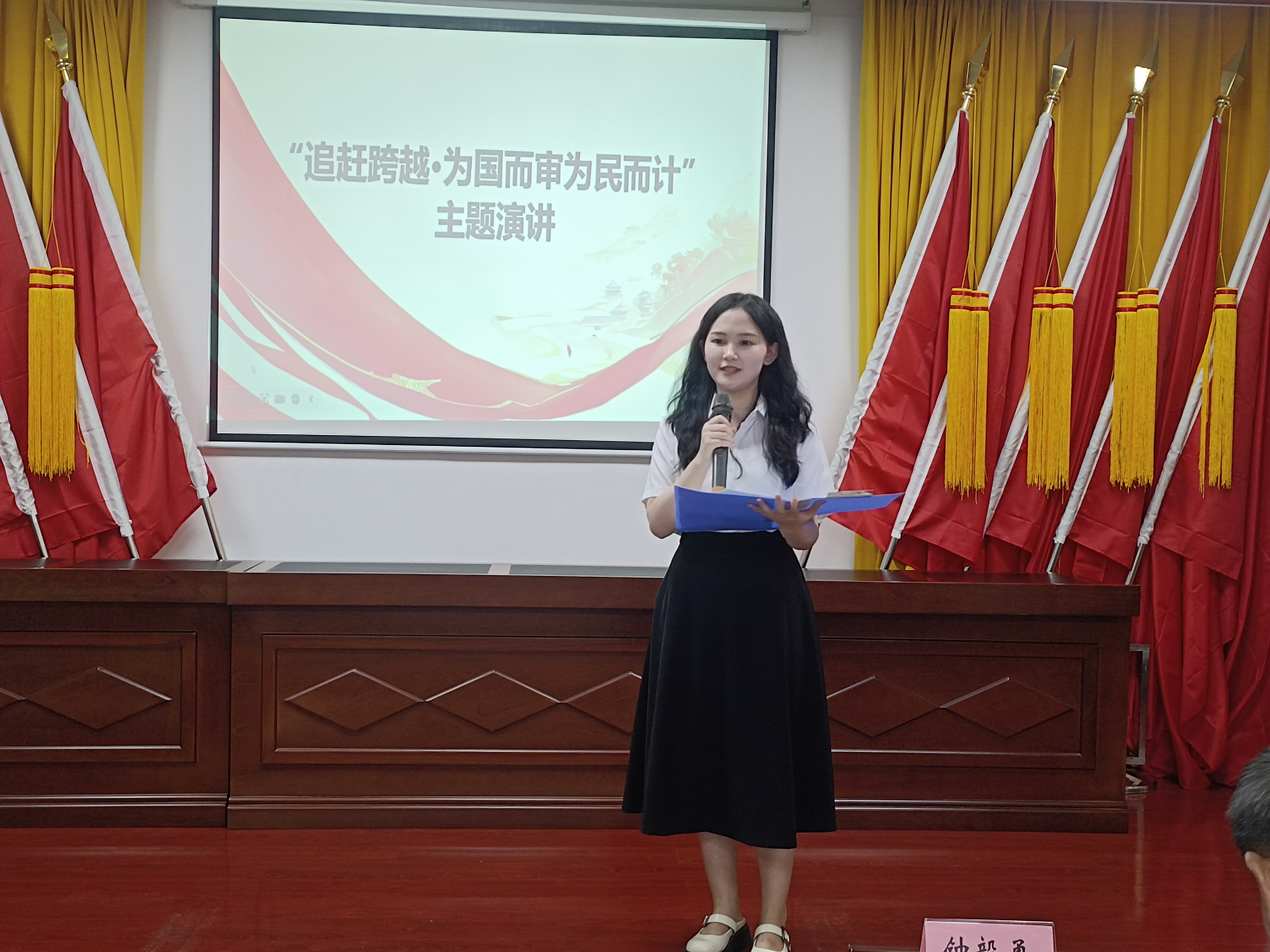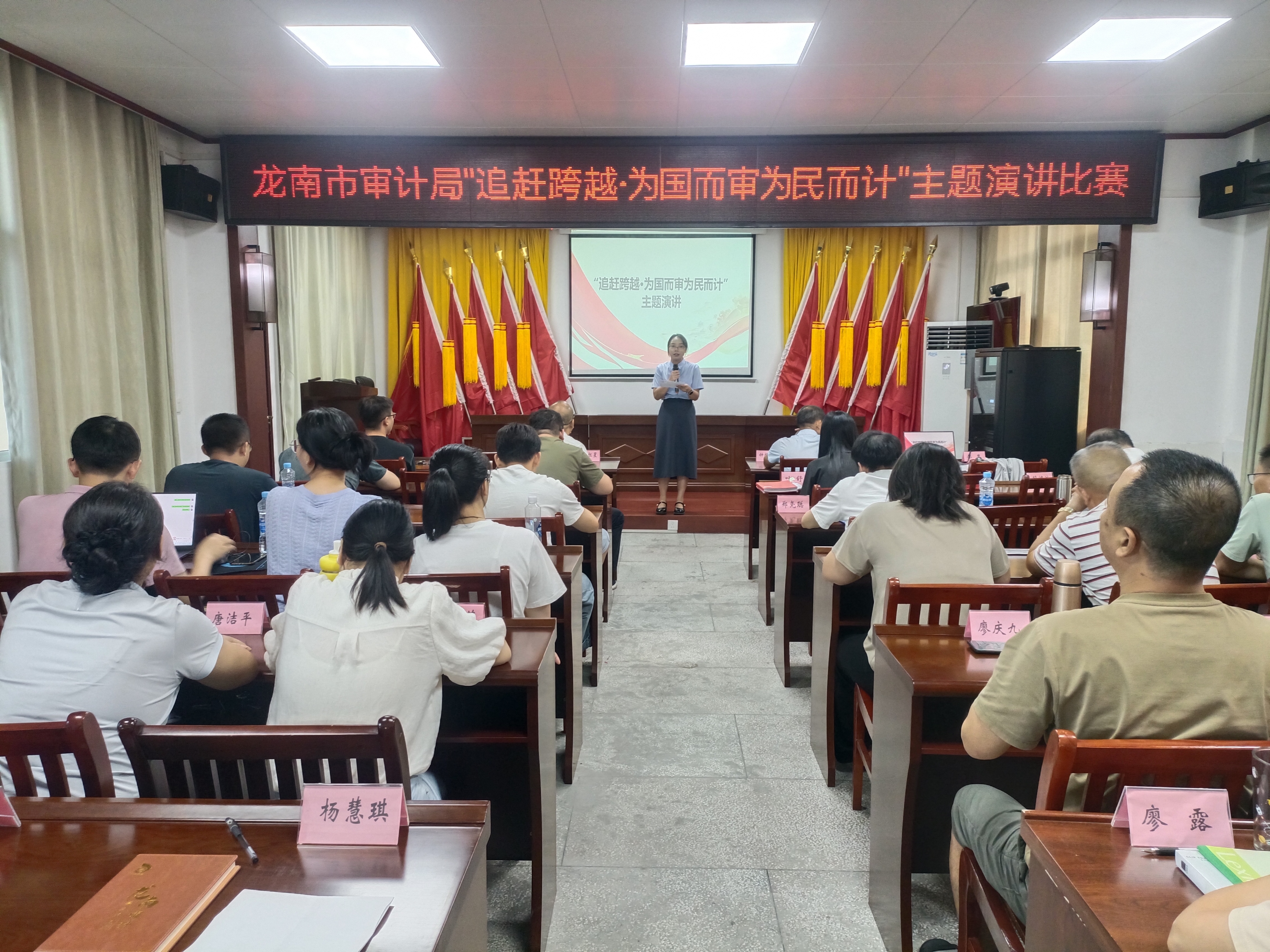 在中华人民共和国成立76周年华诞来临之际,龙南市审计局举办“追赶跨越·为国而审为民而计”迎国庆主题演讲比赛。青年审计干部依次登台,结合自身在项目审计、乡村振兴等一线的实践,以《以青春热血书写审计担当》《青春铸忠诚,丹心照审计》等为题,用鲜活事例与真挚情感,生动诠释审计人的初心使命,现场气氛热烈。
