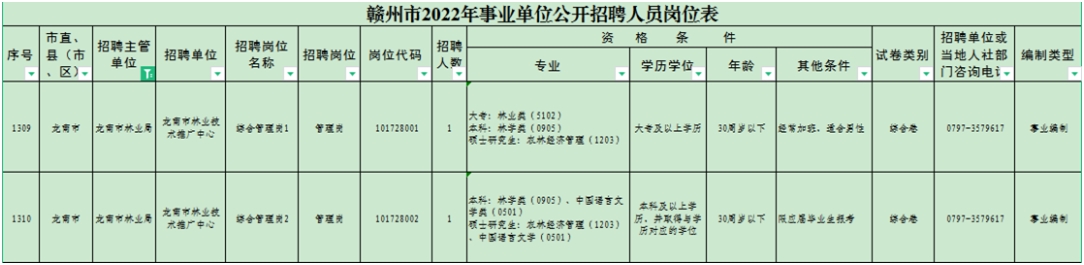 近日赣州市2022年事业单位公开招聘人员公告发布,龙南市林业局共有2个岗位计划招聘2人。
