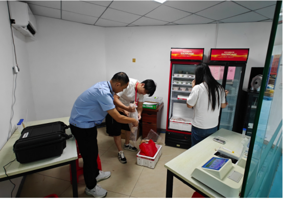 近日,龙南市市场监督管理局在龙南市兵哥食品供应链有限公司开展“你送我检”活动,现场对食材进行抽样,由官方认可的权威机构检测并公示结果,通过“客户选样、免费检测、即时反馈”模式,让食材安全从源头到终端全程可追溯、可验证,既强化校园食品质量安全,也让家校对食品安全更放心。