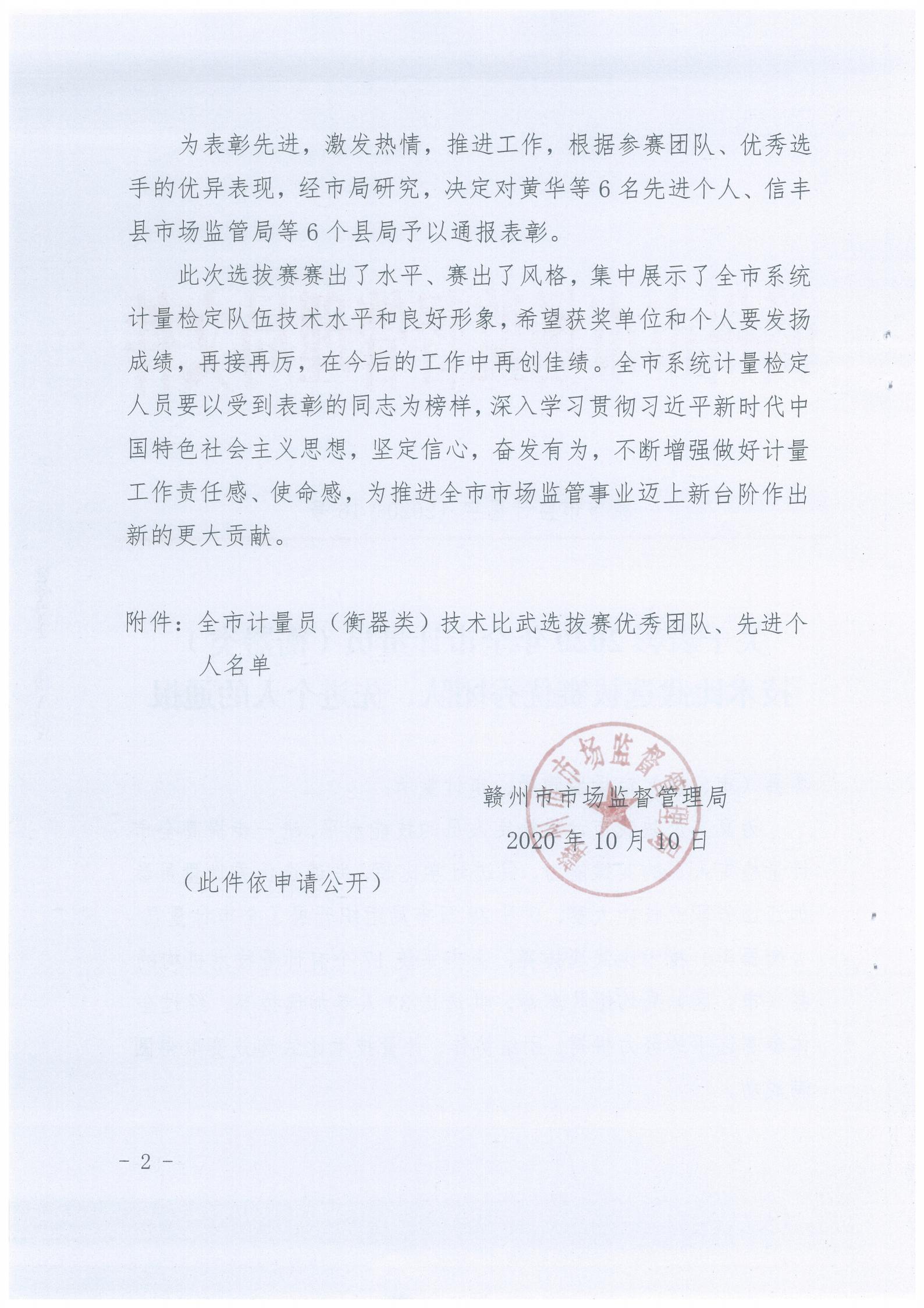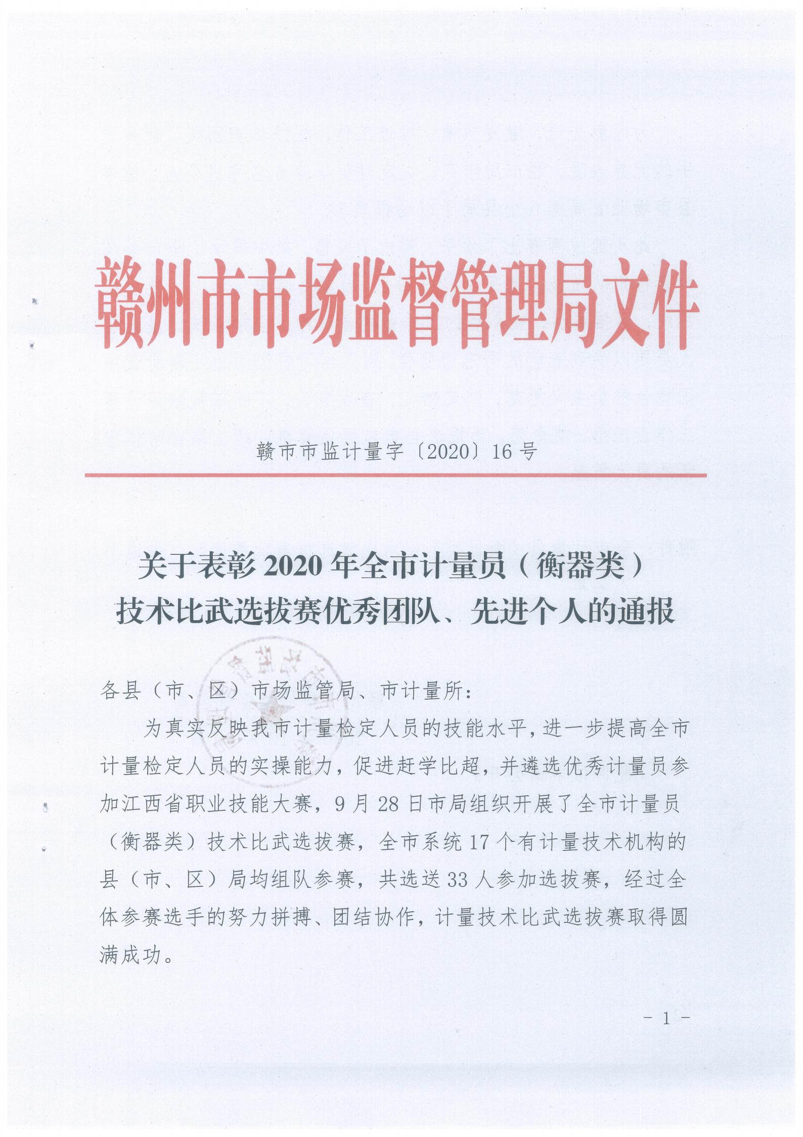 龙南市市场监督管理局荣获2020年赣州市计量员技术比武选拔赛优秀团队、先进个人