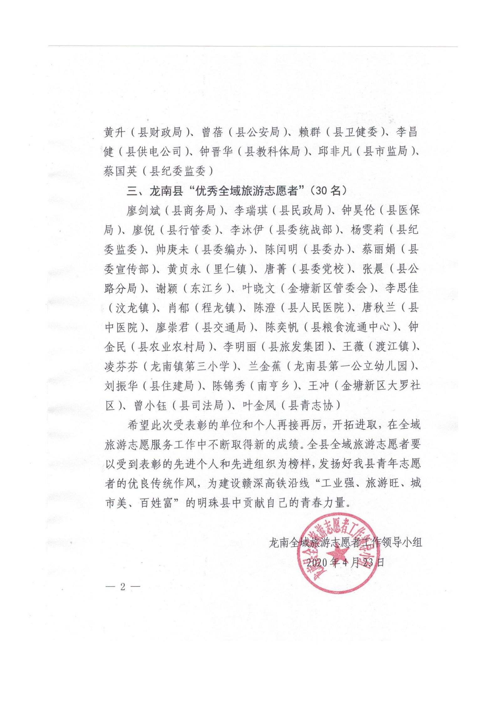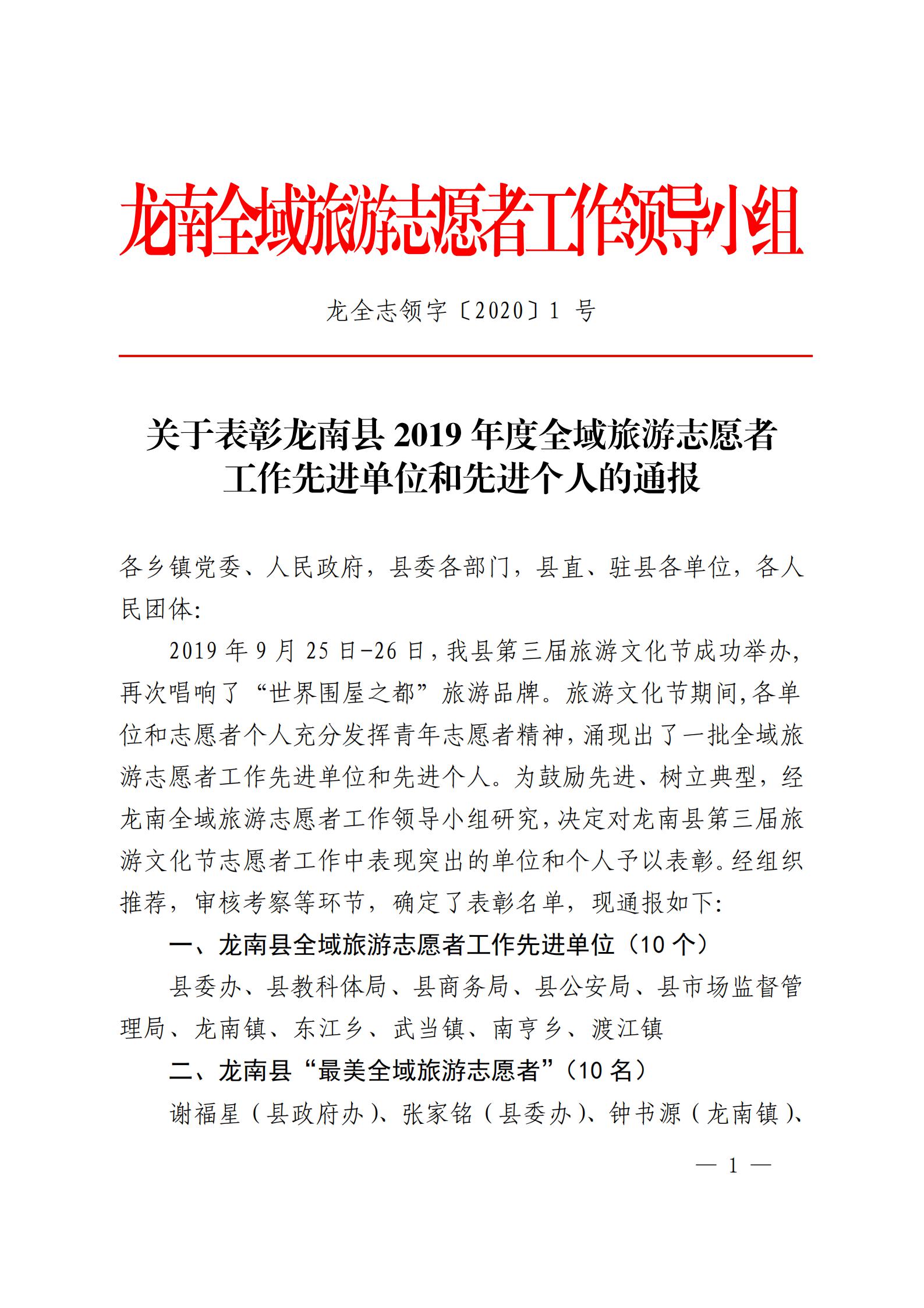 龙南市市场监管局荣获龙南2019年度全域旅游志愿者工作先进单位和先进个人