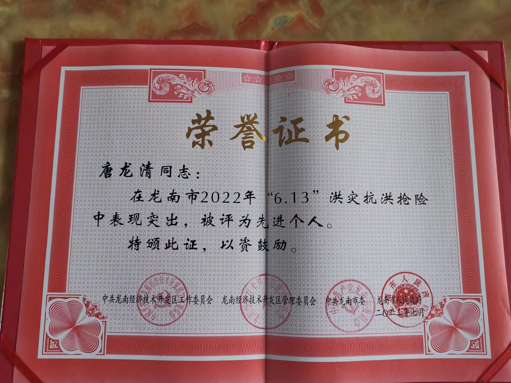 我局唐龙清同志荣获“6.13”洪灾抗洪救灾先进个人