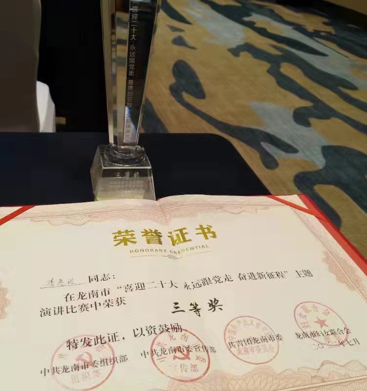 李惠玲同志在“喜迎党的二十大 永远跟党走 奋进新征程 ”主题演讲比赛中荣获三等奖