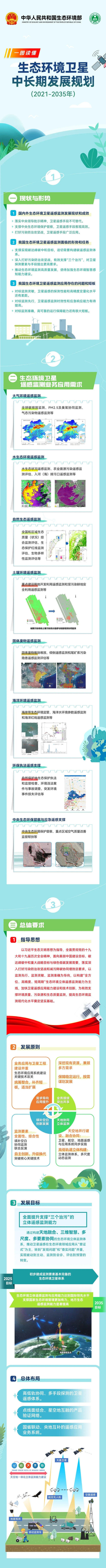 党的二十大提出“中国式现代化是人与自然和谐共生的现代化”。在全党全国深入学习贯彻党的二十大精神之际,我部印发《生态环境卫星中长期发展规划(2021—2035年)》,进一步推进生态环境卫星遥感监测高质量发展,更好支撑深入打好污染防治攻坚战,助力美丽中国建设。