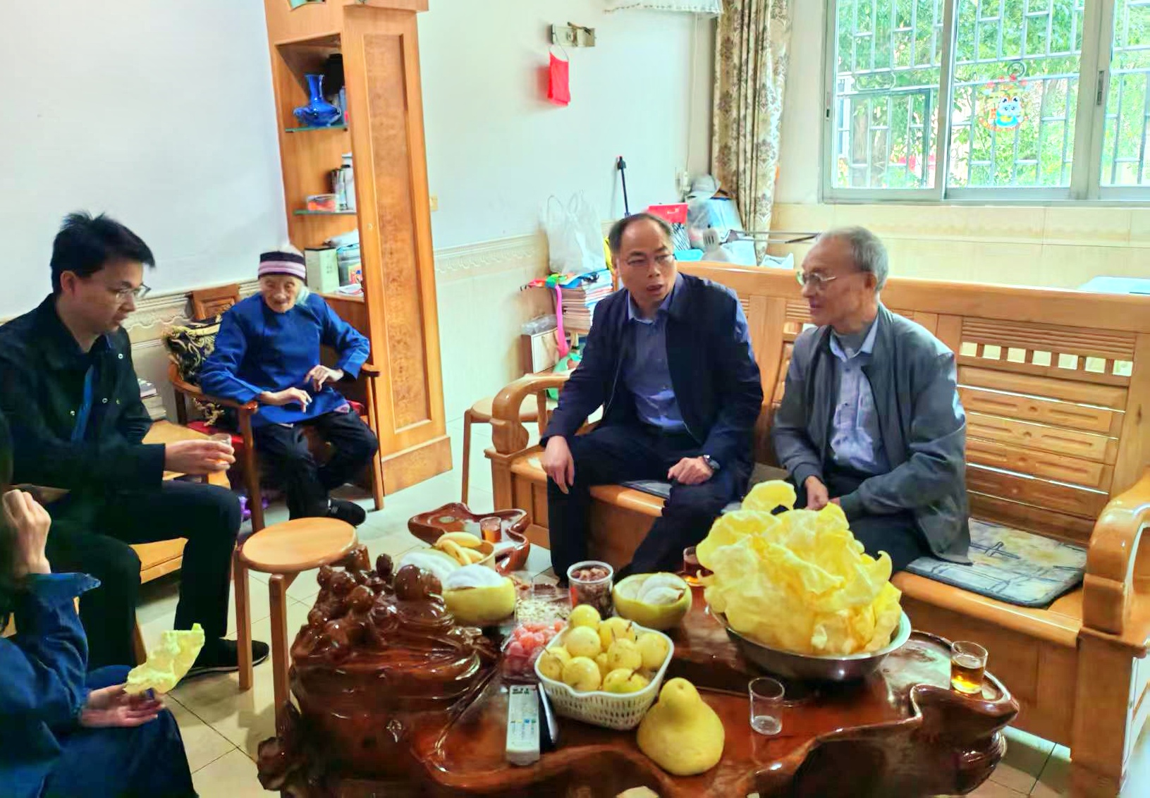 杨其信先后慰问了住在龙南镇金水社区108岁的钟奶奶和住在好望角老年公寓100岁的沈奶奶。在细致询问老人身体状况、饮食作息及日常照料等细节后,分别为两位百岁老人送上节日祝福和慰问。他强调,要针对高龄、失能老人的不同需求细化服务举措,让为老服务更精准贴心,切实让老人舒心、家属放心。