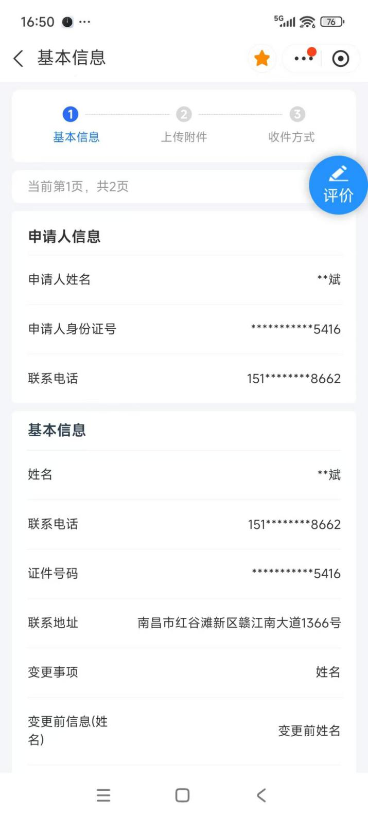 3.请选择变更的类型:请按实际情况填写,如下图变更了姓名。