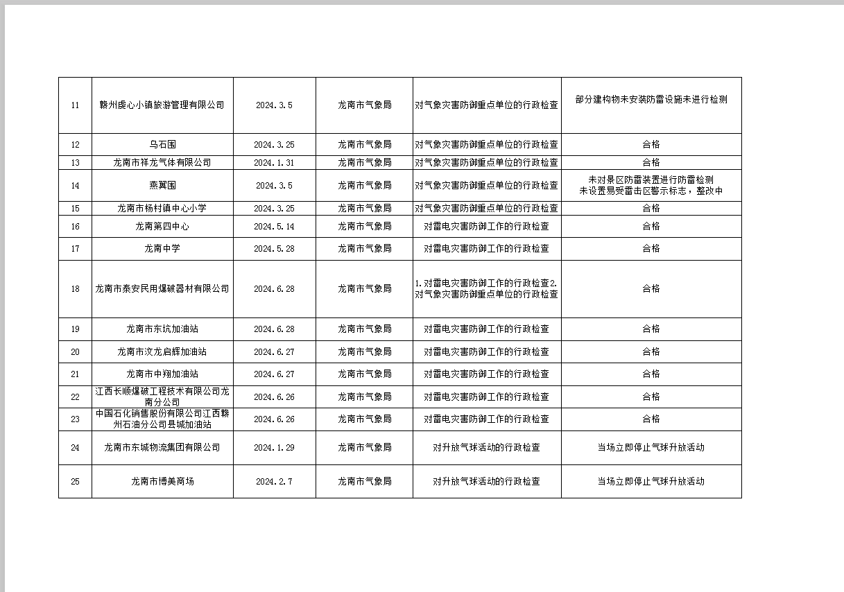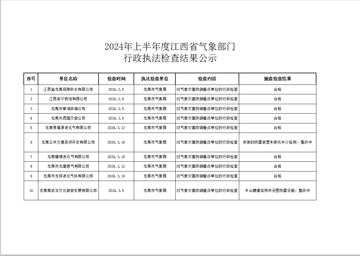 2024年上半年度龙南市气象局行政执法检查结果公示