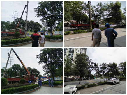 在社区干部协助下,电力人员快速评估风险,制定方案。设置警戒区后,高效拆除了这根“定时炸弹”。从发现隐患到完成处置,整个过程仅约两小时,反应迅速、处置专业,彻底消除了安全隐患。