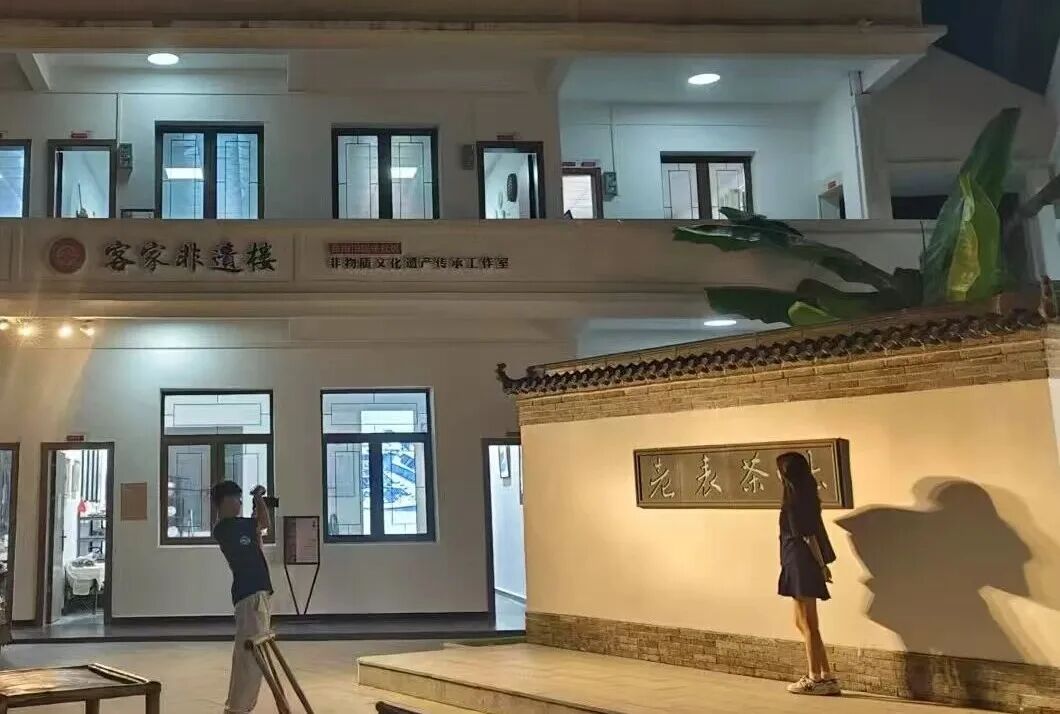 在老街中段,师生们参观了龙南商业往事微展览和具有龙南文化特色的客家非遗楼,纷纷竖起大拇指。