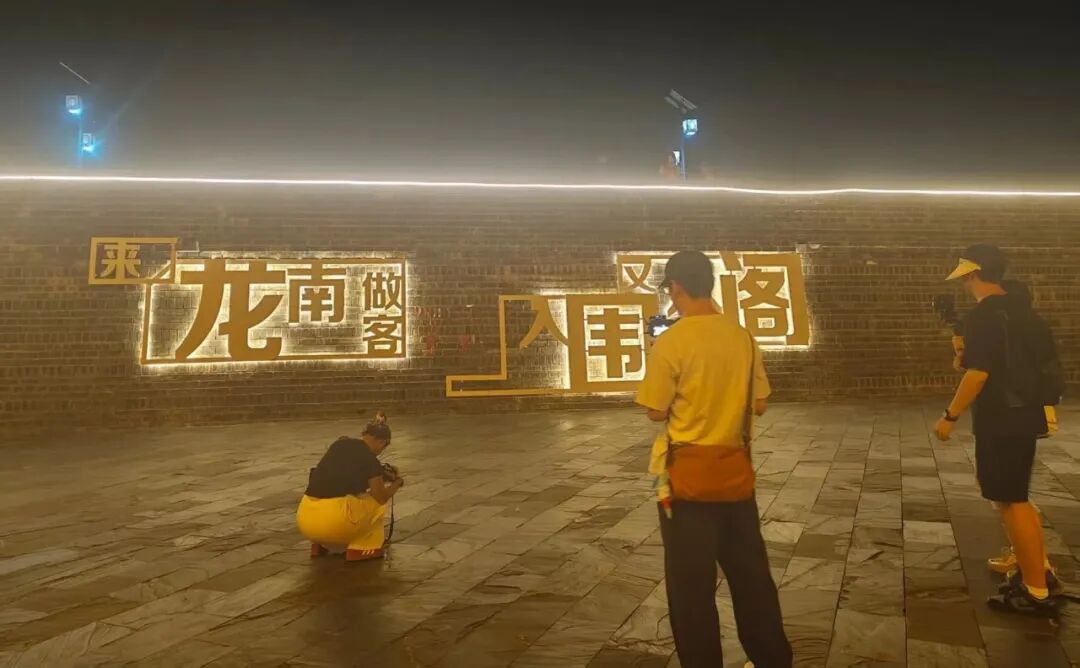 下荳行广场,“来龙南做客,入围又入阁”的欢迎词闪闪发光,十分好看,屹立的门楼、仿古的城墙都让大家拍手称赞,大家不约而同的走过去,以不同的角度,拍出一张张精彩的照片。