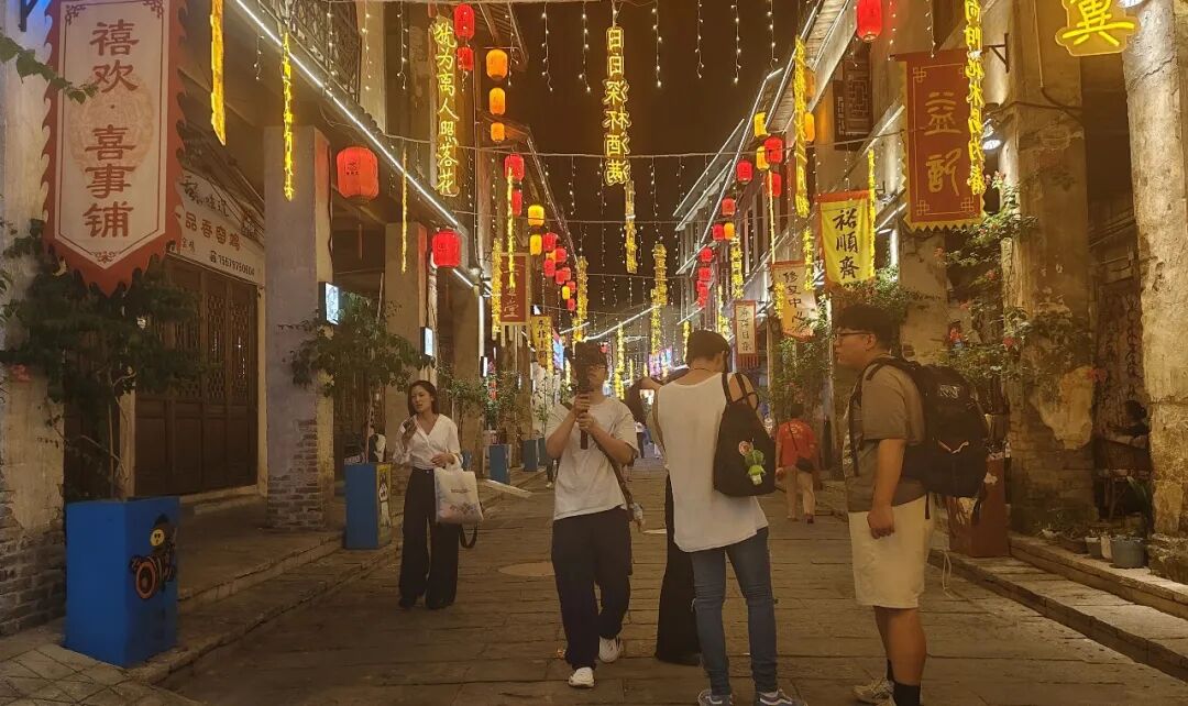 晚上的黄道生骑楼老街(解放街),灯火璀璨,人流不息,参赛师生们来到了这里,一边听着讲解了解龙南解放的红色历史,一边高兴的举起了相机,记录下这里的人间美好。