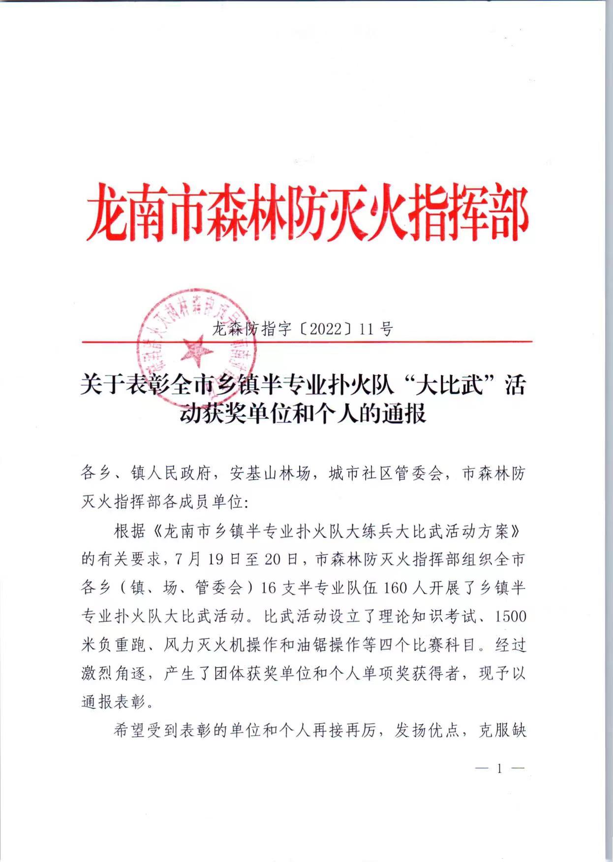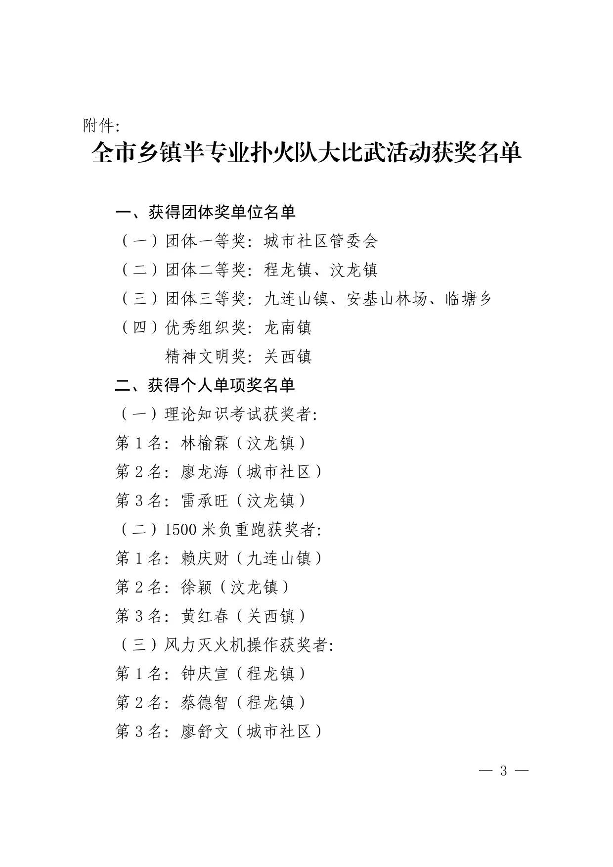 关于表彰全市乡镇半专业扑火队“大比武”活动获奖单位和个人的通报