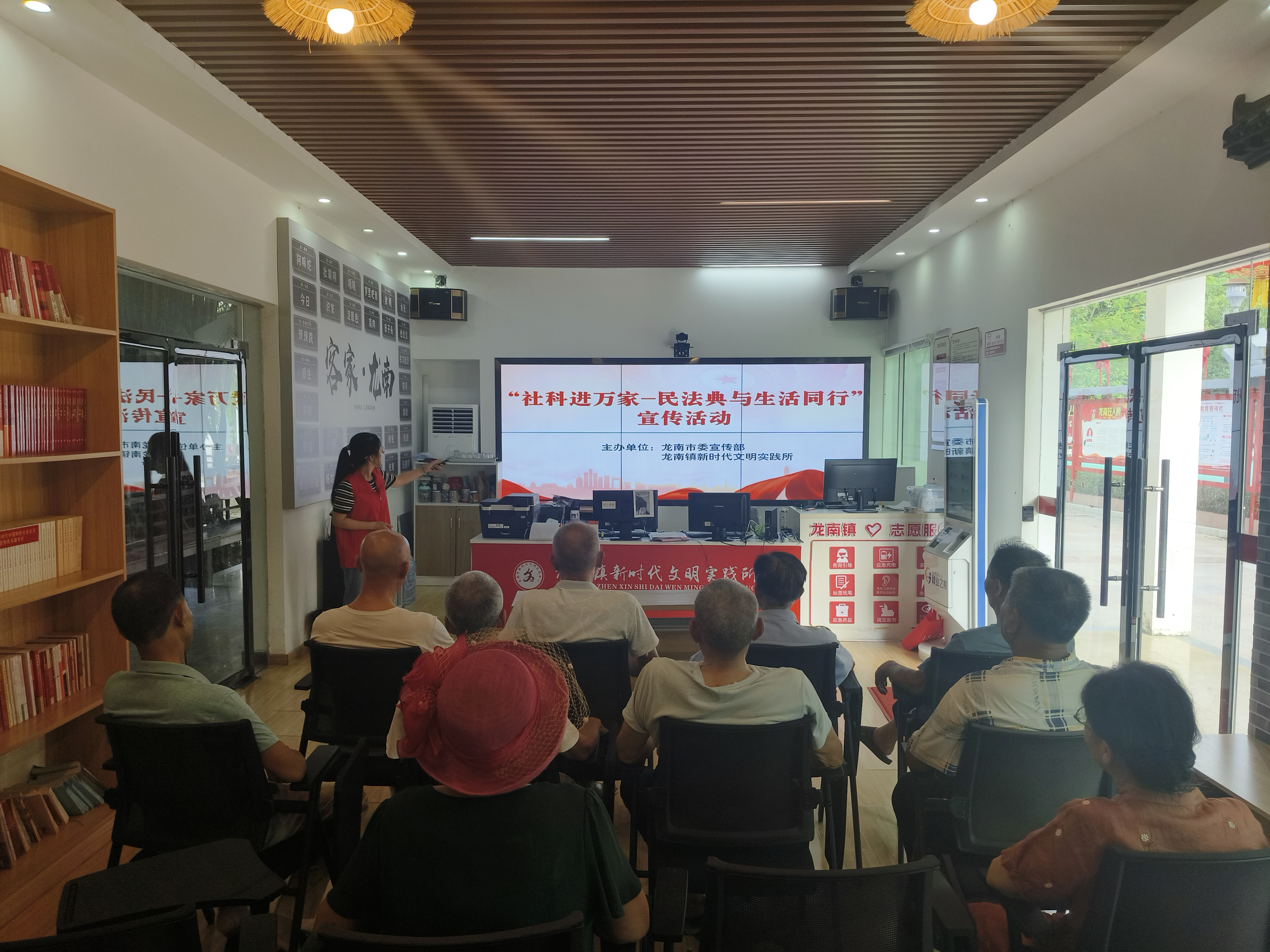 为切实提高辖区居民的法律意识和法治观念,让《中华人民共和国民法典》走到群众身边,走进群众心里。近日,龙南镇新时代文明实践所开展“社科进万家—民法典与生活同行”宣传活动,吸引了众多居民参与。