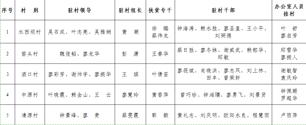 桃江乡2021年度乡机关干职工驻村安排表