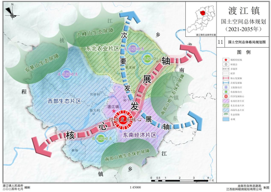 规划提出渡江镇发展定位为:以农副产品加工业为主导,集城镇综合服务、城郊农旅康养等功能于一体的城乡融合示范区。