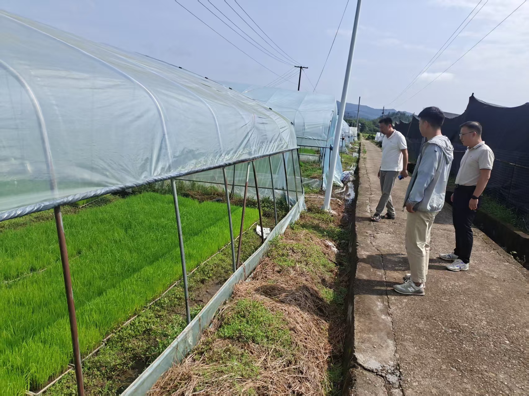 龙南市农业农村局在程龙镇核查晚稻育秧情况。