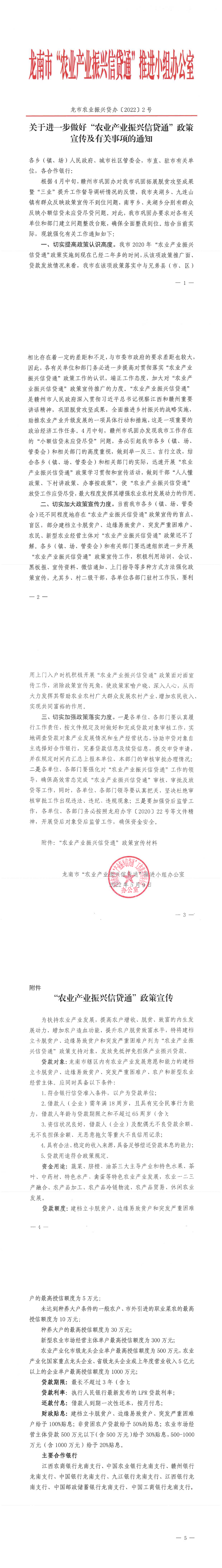 关于进一步做好“农业产业振兴信贷通”政策宣传和有关事项的通知