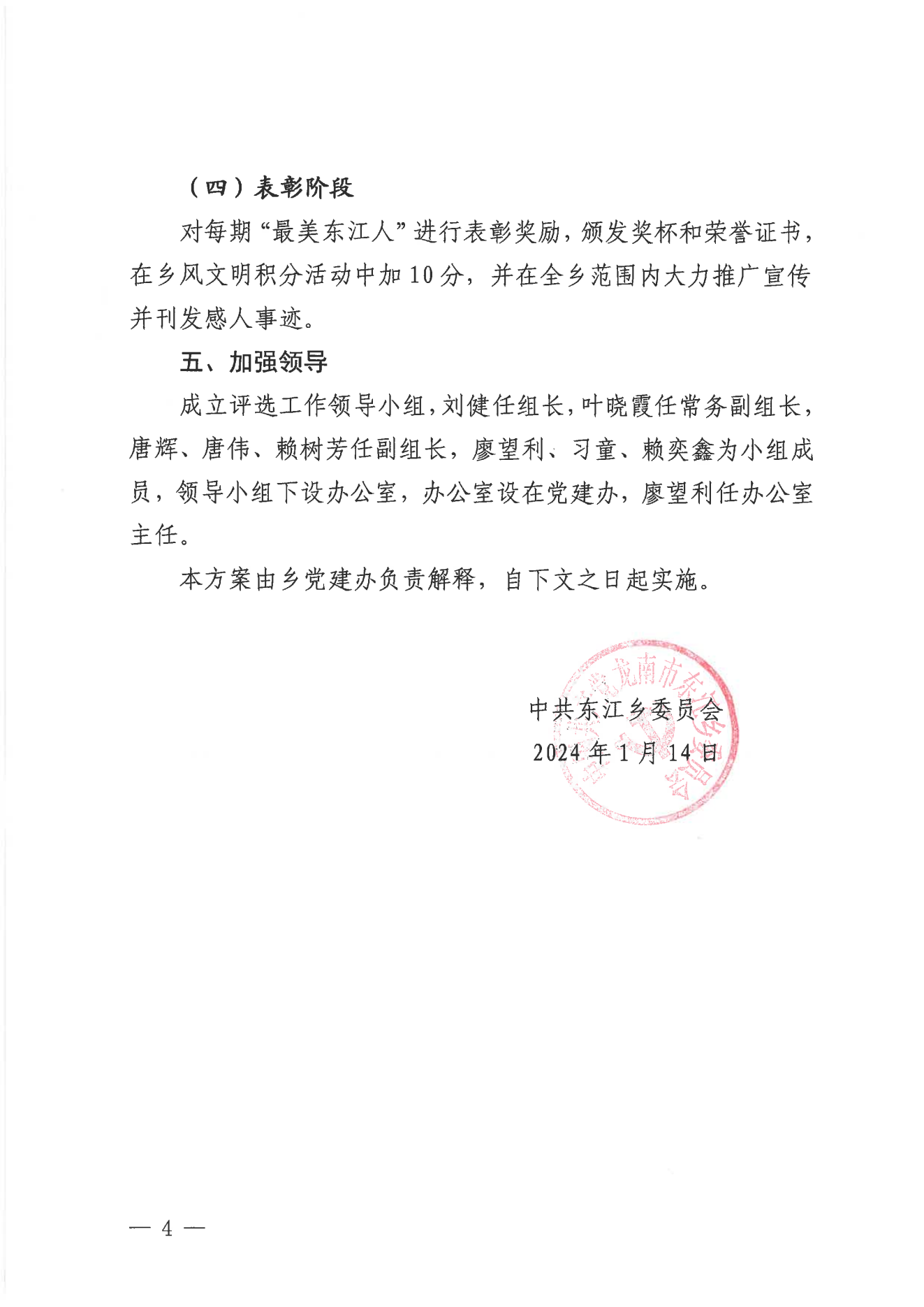 关于印发《东江乡“最美东江人”评选方案》 的通知