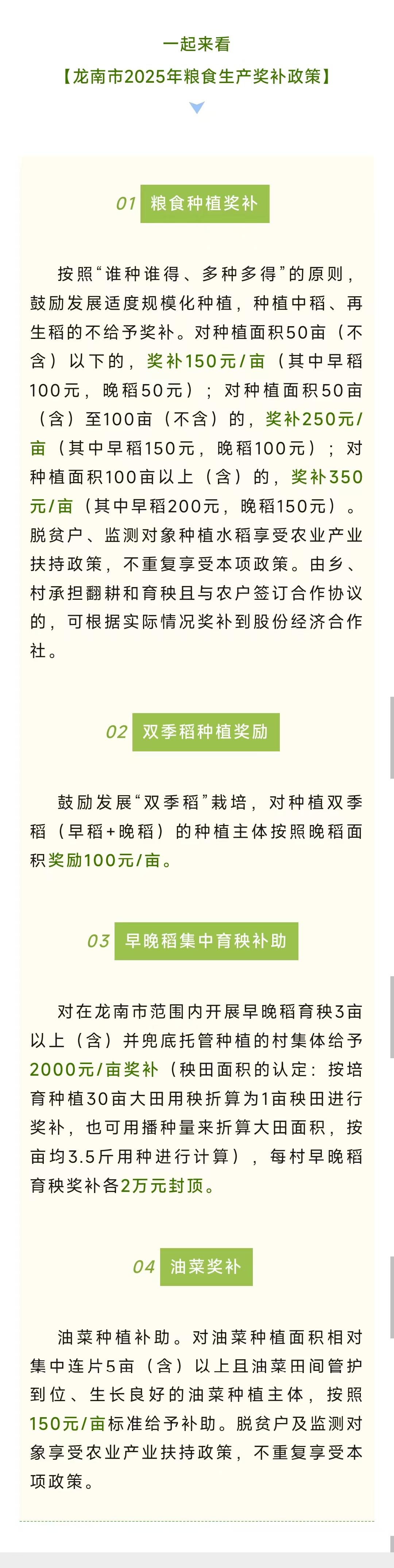 龙南市2025年粮油生产奖补政策实施办法的政策解读