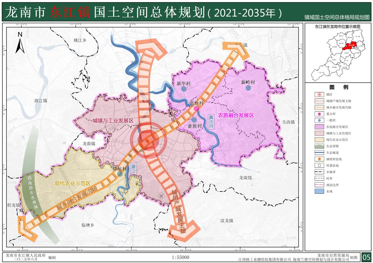 规划提出东江镇发展定位为:龙南市中心城镇、“三南”产业合作示范镇、龙南对接粤港澳大湾区的工贸城镇及新质工业引领区。