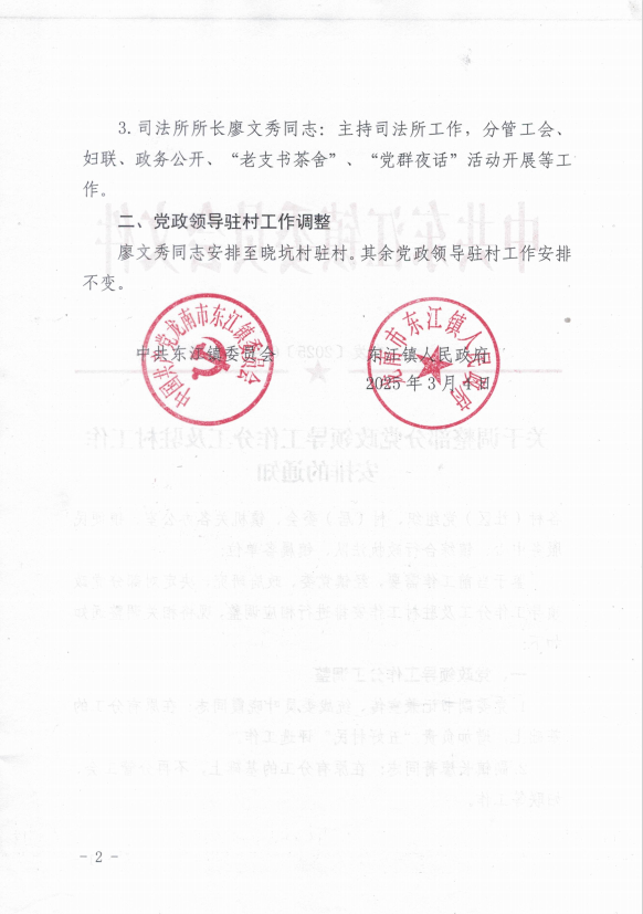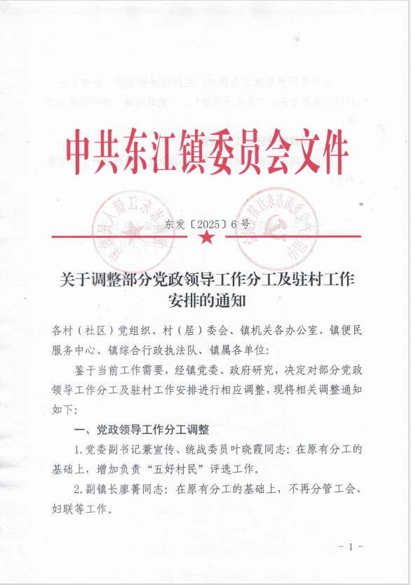 关于调整部分党政领导工作分工及驻村工作安排的通知