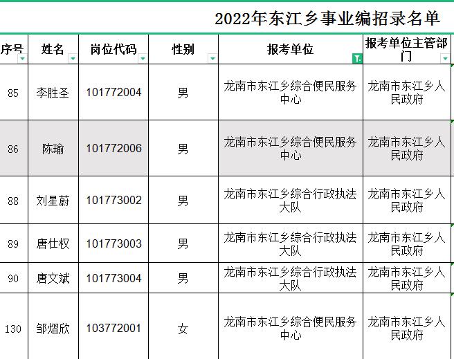 2022年东江乡事业编人员招录名单
