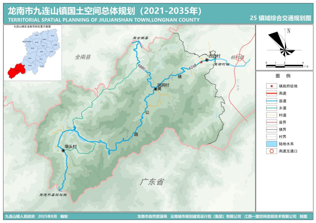 至2035年,九连山镇主要完善区域交通运输网络。构筑镇域“2+2”交通运输网络,促进区域交通、城乡交通协调发展。